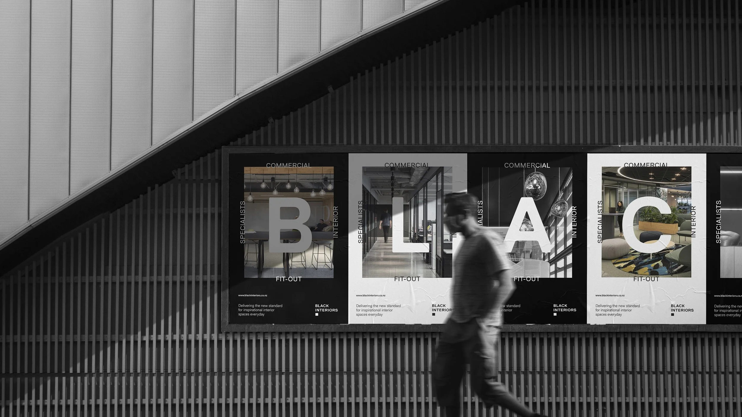 Black Interiors are specialists in construction and interior fit-outs, known for delivering high-end quality work. They required a redesign of their visual identity to help bring cohesion to their brand. While the existing logo had to remain, we developed a distinctive dynamic monogram and introduced a flexible visual framework giving Black Interiors a system they could own.